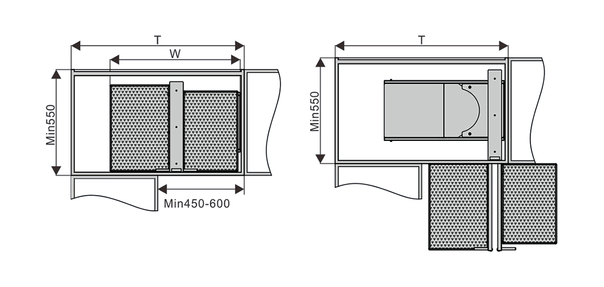 | UL871 | 900 | 680x470x580 | الحد الأدنى لحجم الباب: 430 مللي متر | 25-30 كلغ |